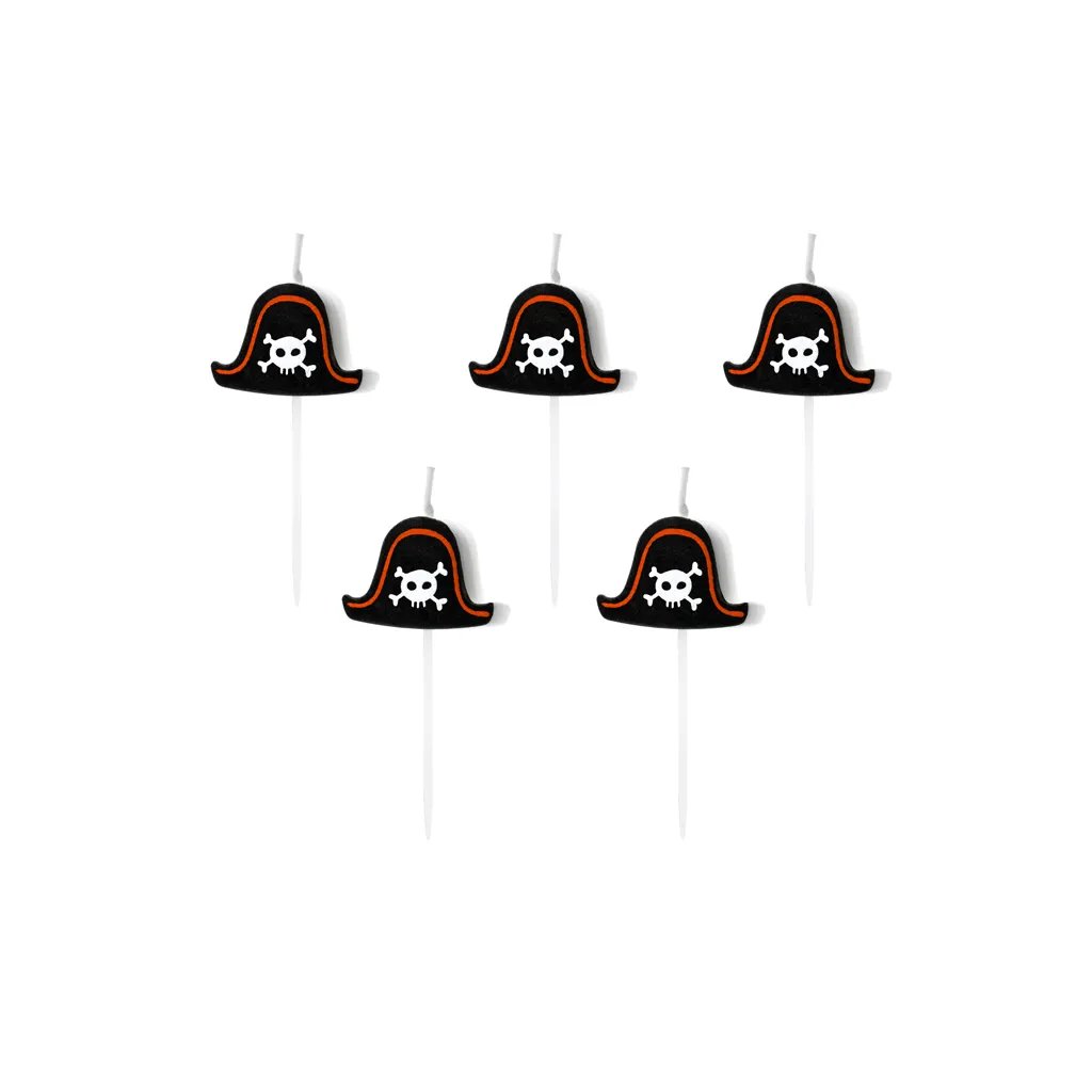 Pirátské klobouky jako dortové svíčky. Velikost cca 4 x 3 cm + zapichovací část do dortu.