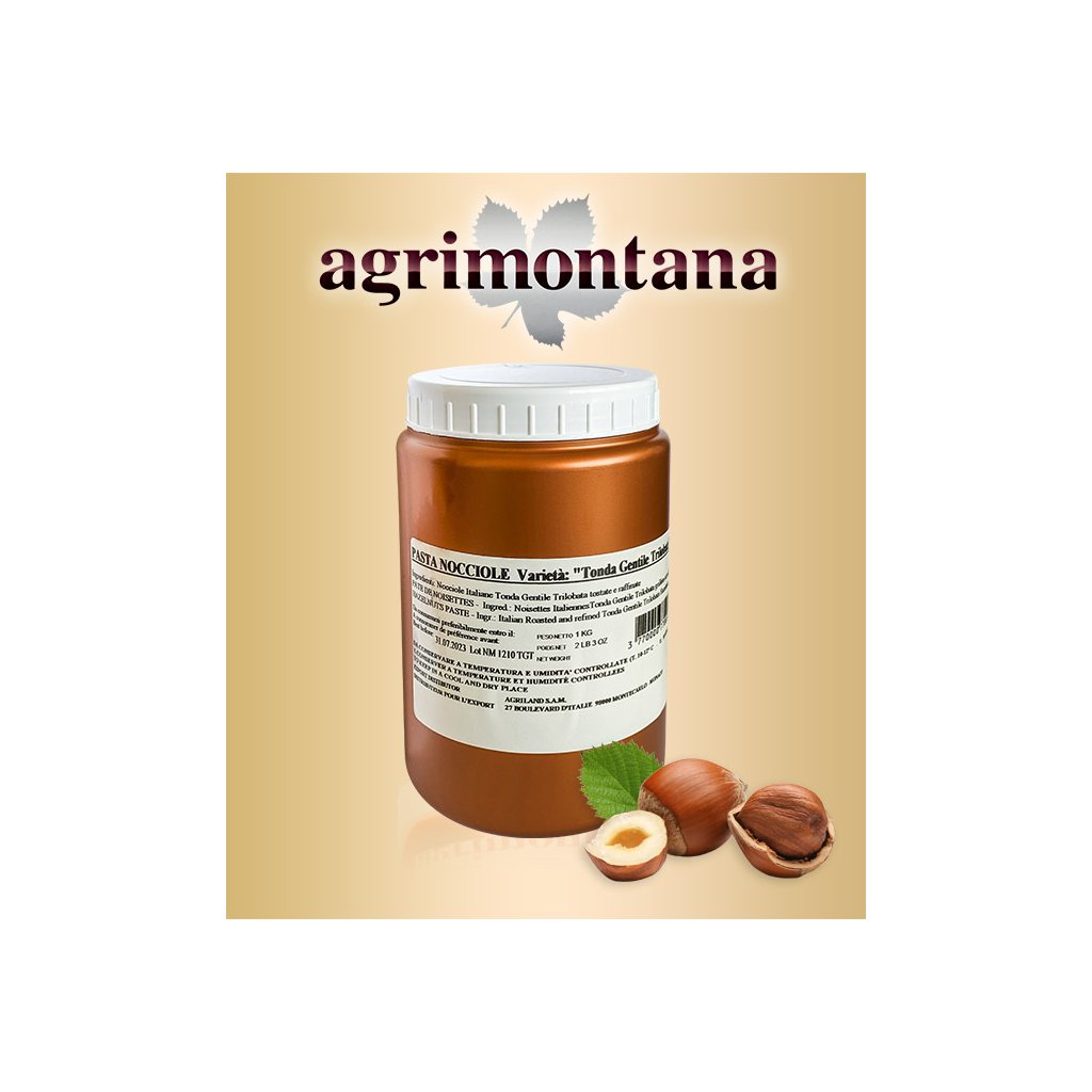 Exkluzivní ochucovací lískooříšková pasta 100%od Agrimontany, ideální pro výrobu zmrzlin, dezertů a náplní. Hladká pasta z pražených a loupaných oříšků se získává drcením a šetrným válcováním nejlepších oříšků z jižního regionu Piemonte, oblasti Alta Langa nesoucí označení I.G.P. Agrimontana vyrábí pouze 100% přírodní a profesionální produkty, proto tento výrobek neobsahuje žádná přidaná barviva a aromata. Složení: 100% lískové oříšky IGP Piemonte (odrůda „Tonda Gentile Trilobata“). Alergeny: Skořápkové plody. Výrobek může obsahovat stopové množství ostatních skořápkových plodů. GMO: Neobsahuje a nepochází z geneticky modifikovaných surovin. Gluten free: bez lepku. Přípravek je určen pro profesionální použití.