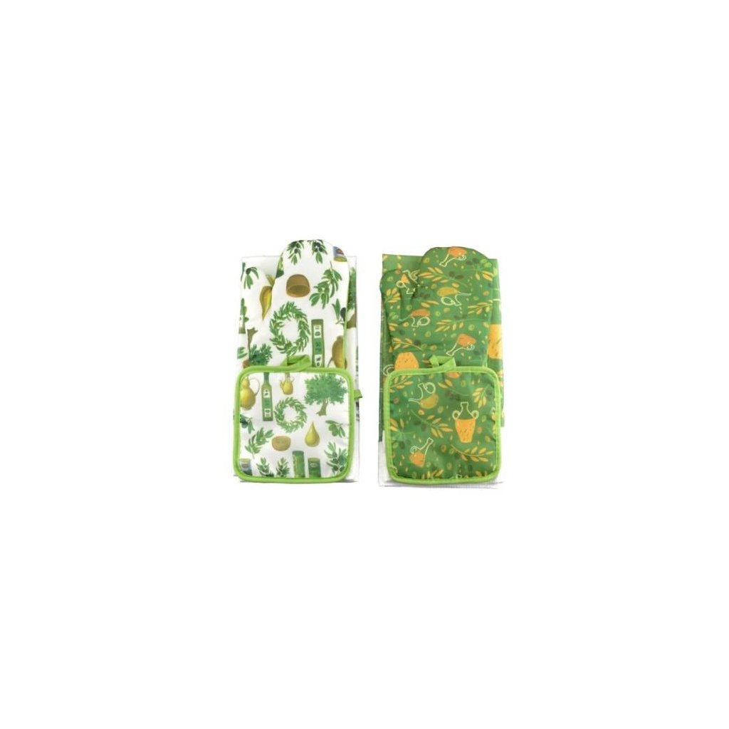 Stylová a praktická sada obsahující kuchyňskou chňapku, podložku pod hrnec a utěrku je ideálním doplňkem do každé domácnosti. Chňapka chrání ruce před horkem při manipulaci s nádobím, podložka pod hrnec zajistí bezpečné odkládání horkých nádob na pracovní plochu a kvalitní utěrka je nepostradatelná pro každodenní úklid a sušení nádobí. Rozměr chňapky: 25 x 17 cm Rozměr podložky pod hrnec: 16,5 x 16,5 cm Rozměr utěrky: 40 x 60 cmDoplňkové parametry