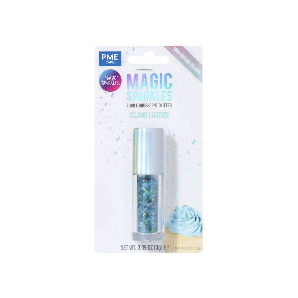 PME glitry jsou 100% jedlé a veganské, vyrobené z rostlinných barev. Používejte na suché povrchy, aby se glitry nerozpustily. Jsou ideální pro dodání oslnivého nádechu vašim výrobkům. Složení: maltodextrin, barviva extrakt ze spiruliny, koncentrát z mrkve a světlice barvířské, antioxidant E300Doplňkové parametry