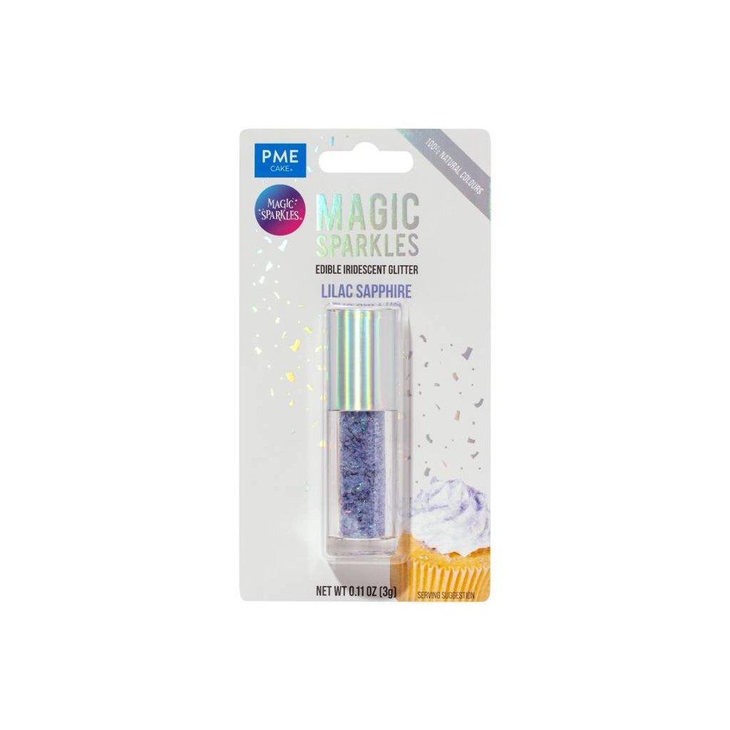 PME glitry jsou 100% jedlé a veganské, vyrobené z rostlinných barev. Používejte na suché povrchy, aby se glitry nerozpustily. Jsou ideální pro dodání oslnivého nádechu vašim výrobkům.Složení, co obsahuje produkt - PME Jedlé glitry Lilac Sapphire 3 g pro cukrářské účely: