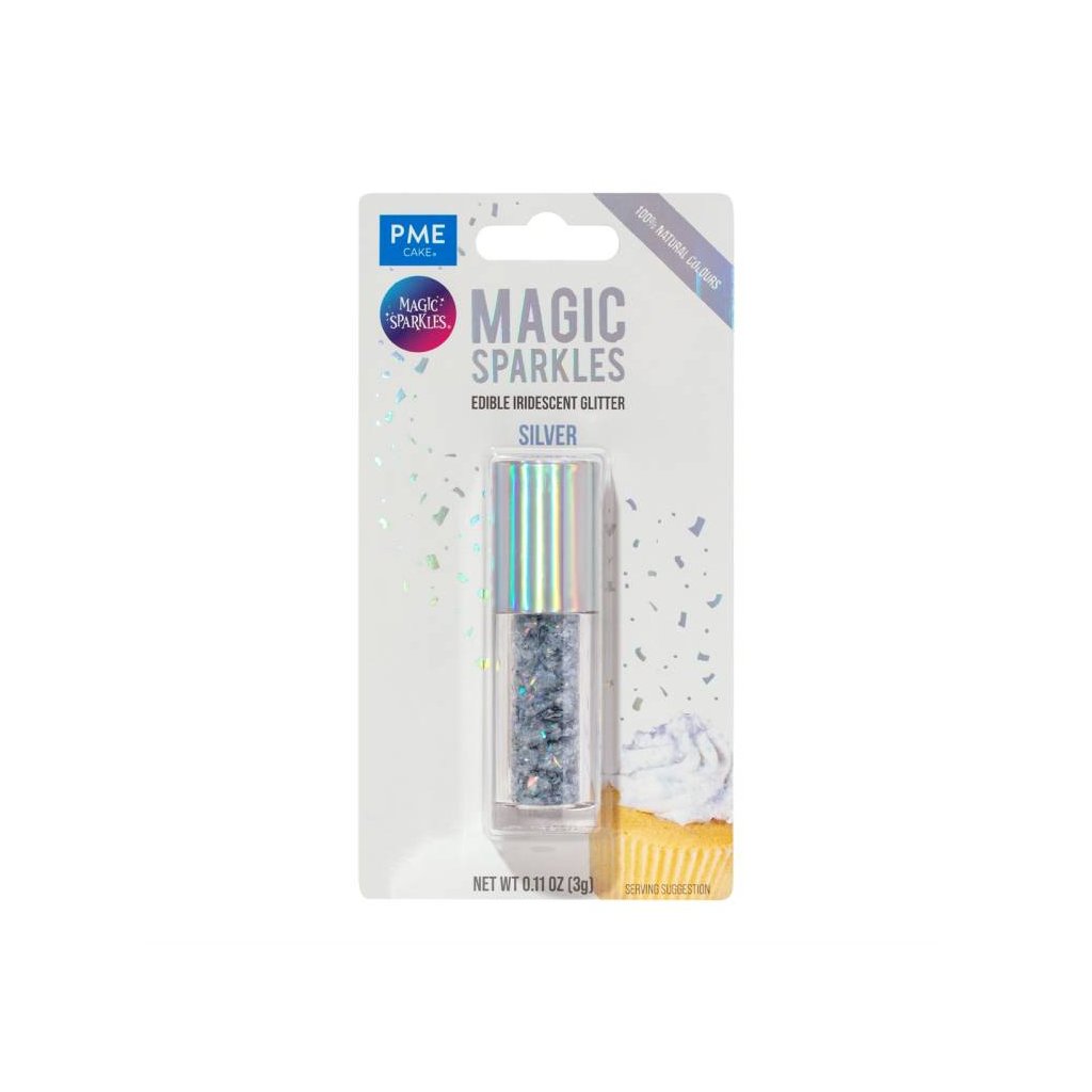 PME glitry jsou 100% jedlé a veganské, vyrobené z rostlinných barev. Používejte na suché povrchy, aby se glitry nerozpustily. Jsou ideální pro dodání oslnivého nádechu vašim výrobkům.Složení, co obsahuje produkt - PME Jedlé glitry Silver 3 g pro cukrářské účely: