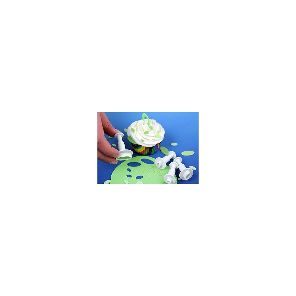 Materiál: plastRozměry: 0,6 cm, 1 cm, 1,3 cm a 2,4 cmVykrajovátko přiložíme na vyválenou hmotu. Příslušný tvar vykrojíme bez stlačování pístu, tudíž jen přitlačením obvodu vykrajovátka. Vykrojený tvar nám zůstane uvnitř. Nyní pomocí pístu hmotu vytlačíme ven. Lze tak dekorovat dort přiložením vykrajovátka přímo na něj a pak následným stlačením pístu.Doplňkové parametry