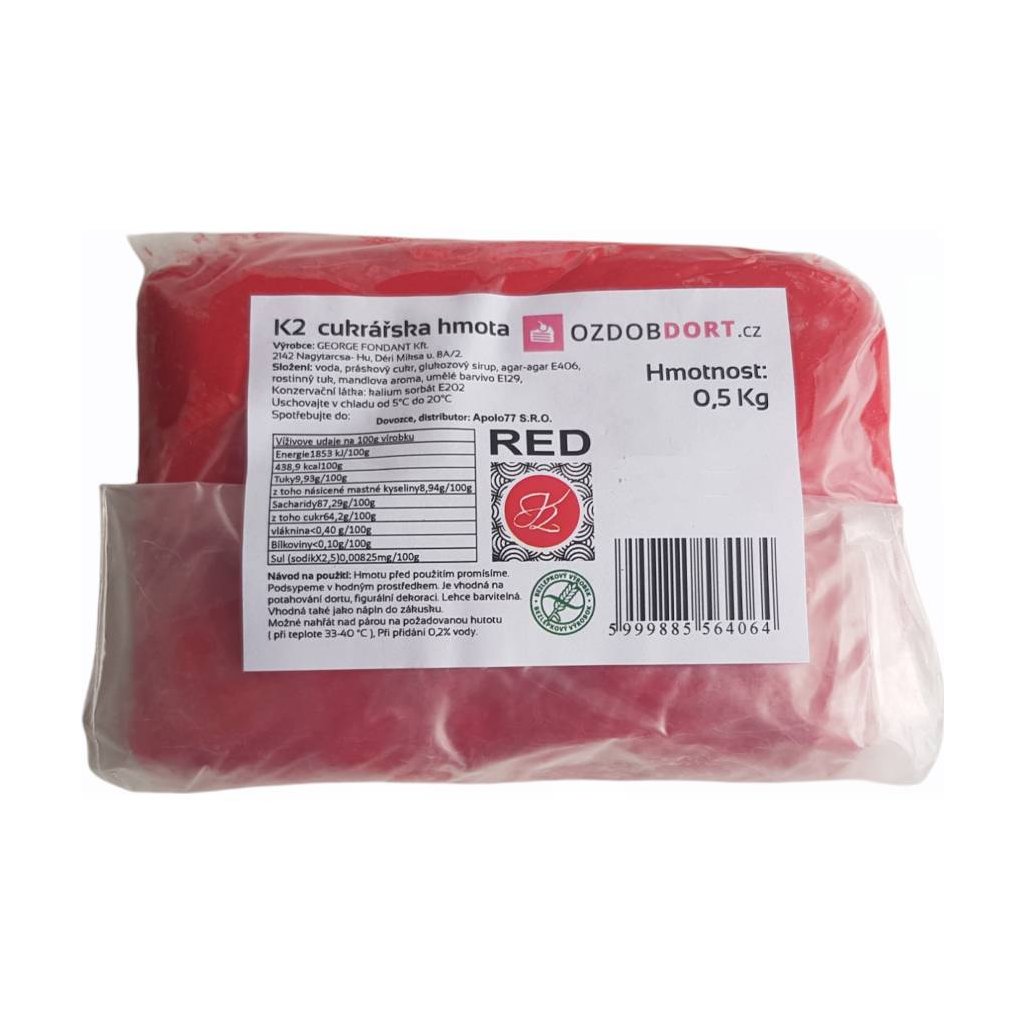 0,5 kg potahovací hmoty na ozdobení různých dortů.Doplňkové parametry