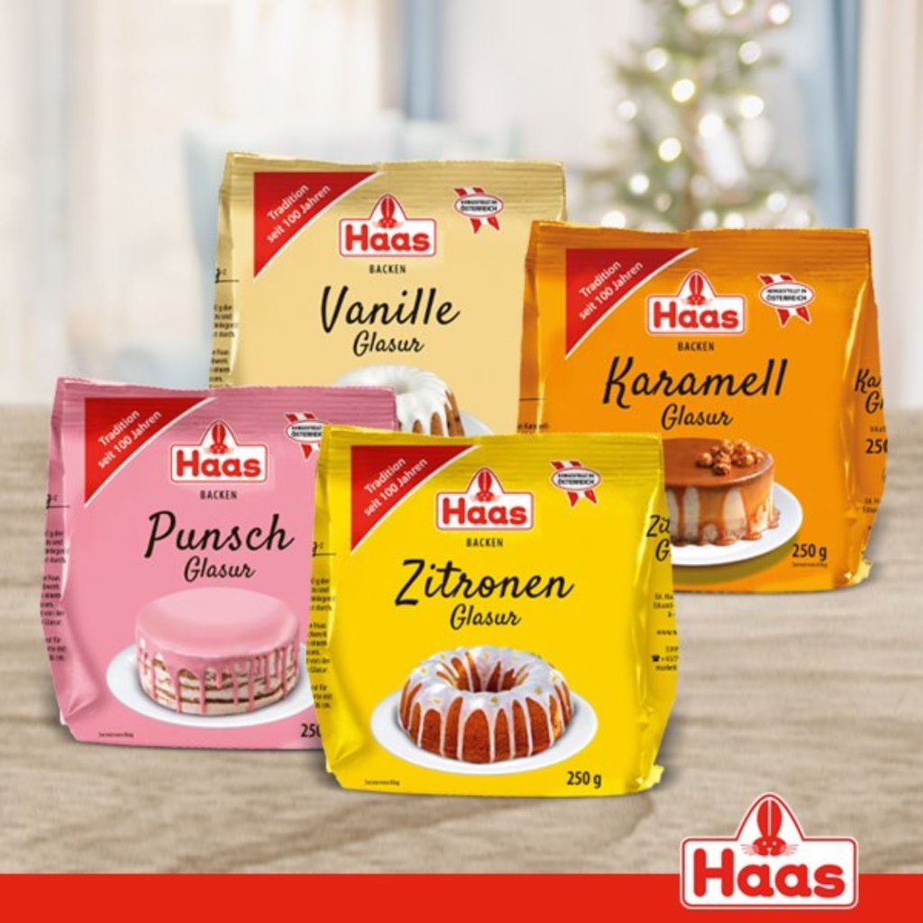 Glazury jsou při pečení prostě nepostradatelné. Ať už na zdobení, zakulacení nebo zakrytí, dodají pečivu glanc. Prášek na cukrovou polevu Haas se jednoduše smíchá s vodou, krátce promíchá a je připraven k použití. Hotové máte již za 2 minuty.