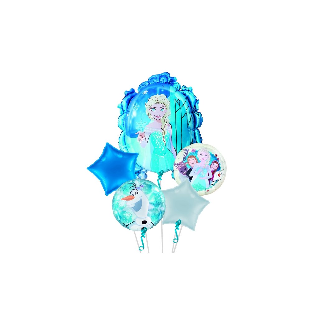 Sada 5 fóliových balonků s motivem Ledového království (Frozen), pro nezapomenutelnou oslavu v království Arendelle. Skvělý dárek pro oslavence a tip na výzdobu narozenin ve stylu Ledové království. Sada obsahuje jeden balónek velikosti 65 cm a 4 velikosti 45 cm, balonky se dají nafukovat héliem a létají i několik týdnů. Balonky lze nafouknout vzduchem (brčko není součástí balení) i heliem přes speciální samouzávěr, který zajistí aby se každý balónek nevyfukoval.Při nafouknutí heliem vydrží plně nafouklý cca 5 až 8 dní, poté se začne pomalu vyfukovat. Létá i několik týdnů. Každý náš balonek je vyroben z recyklovatelných materiálů a je 100% recyklovatelný.Velikost: 1 x 65 cm, 4 x 45 cmBalení: 5 ksMateriál: Kovová fólieObjem: 120 lObchodní balení: AnoDoplňkové parametry