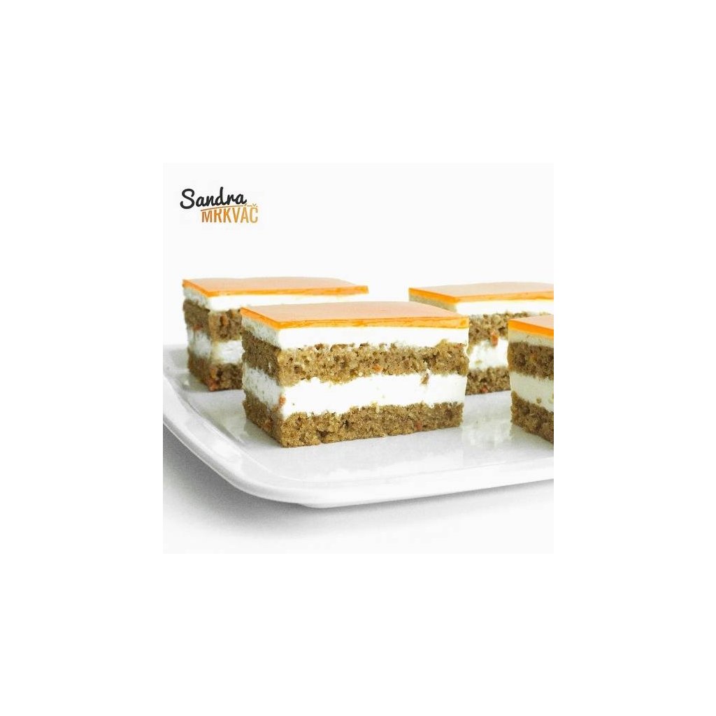 Směs pro přípravu mrkvových korpusů, dobře se kombinuje s čokoládou, ořechy, kokosem a sušenými plody. Jednoduchým způsobem připravíte zajímavé dezerty. Složení: pšeničná mouka, cukr, sušená mrkev (5,5 %), bramborový škrob, kypřící látka (E450, E500), kakao se sníženým obsahem tuku, skořice, sůl, zahušťovadlo (E466), emulgátor (E481), barvivo (E160a), stabilizátor (E516), aroma (obsahuje laktózu), regulátor kyselosti (E341) Dávkování: 1000 g Sandra Mrkváč, 350 g vaječného tekutého obsahu, 350 g vody, 350 g oleje Nutriční hodnoty ve 100 g: energie 1540 kJ/369 kcal, tuky 0,9 g (z toho nasycené 0,3 g), sacharidy 81,2 g (z toho cukry 47,6 g), vláknina 2,7 g, bílkoviny 6,3 g, sůl 0,9 gDoplňkové parametry
