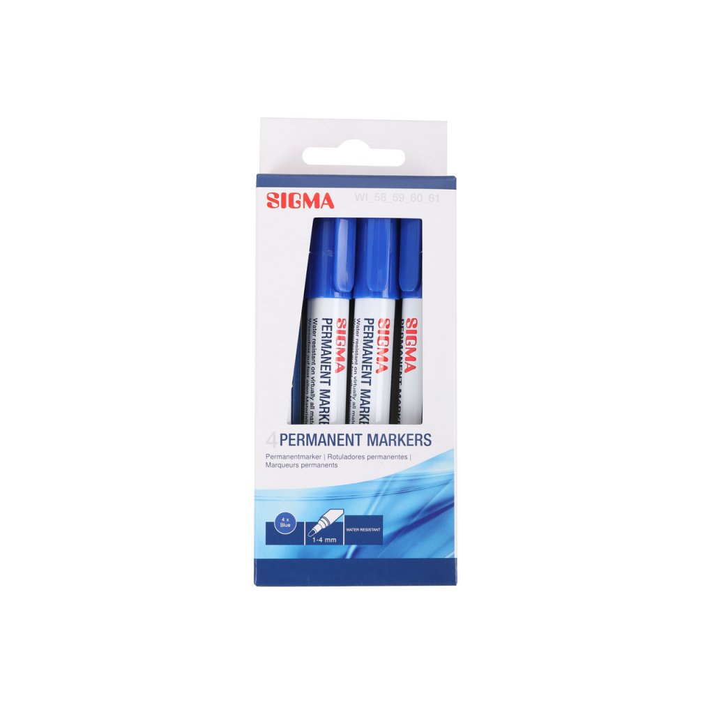 SIGMA Popisovač permanentní modrý 1 - 4 mm 4 ks