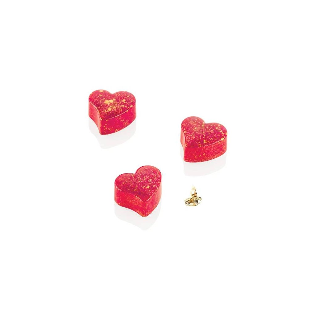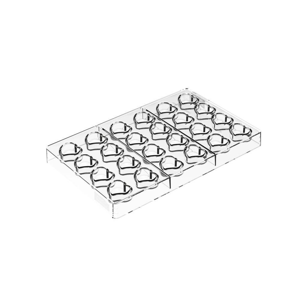 Rozměr formy: 27,5 x 17,5 x 2,5 cm Rozměr pralinky: 3 x 2,7 x 1,6 cm Objem pralinky: 8 ml Materiál: polykrabonát Výroba čokoládových bonbonů je velice jednoduchá. Při výrobě plných čokolád nalijeme do formy čokoládovou hmotu, povrch srovnáme cukrářskou kartou a necháme ztuhnout. Pokud chceme vyrábět plněné bonbony, musíme nejdříve vyrobit tzv. skořápku, to představuje nanesení čokolády na boky tvarovné formy, dáme do mrazáku podchladit a pokud je vrstva tenčí, naneseme vrstvu druhou. Do vytvořené skořepiny vkládáme požadovanou náplň - marcipán, alkoholové náplně, oříškové nebo karamelové. Záleží jen na naší fantazii a chuti. Při plnění skořepiny nezapomeneme na ponechání prostoru na zavíčkování bonbonu – tj. zalití náplně další vrstvičkou čokolády. Formu opět vkládáme do chladu a po vytuhnutí vyklepneme.Doplňkové parametry