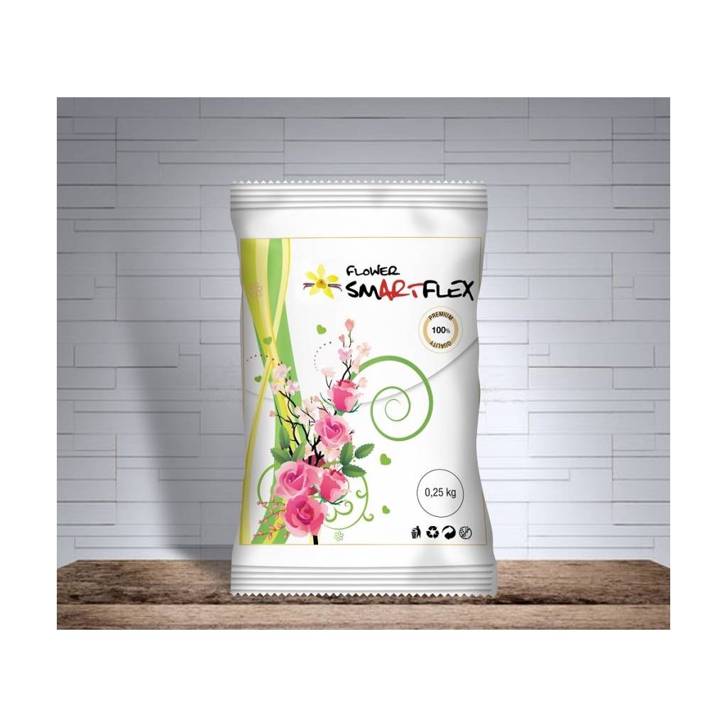 Proč zvolit hmotu Smartflex Flower? - dobře barvitelná - extra pružná - měkká a poddajná - velmi rychle drží tvar - lze ji vyválet na velice tenký plát - nesesedá - netrhá se - lehká chuť a vůně - sněhově bílá Bílá, extra pružná hmota s vynikajícími vlastnostmi uspokojí i toho nejnáročnějšího zákazníka. Hodí se zejména k modelaci květin, lístků, ale také k výrobě oblečení pro figurky. Zkrátka všude, kde potřebujete hmotu velmi tenkou. Je měkká a poddajná, ale nemá tendenci sesedat. Po vykrojení příslušného tvaru a případného umístění na drátek, rychle zasychá a drží svůj tvar. Její lehká vanilková chuť a vůně skvěle doplní delikátnost vašeho výrobku. Efektivní a rychlé použití Bez námahy je hmota kdykoliv připravena k použití. Je dobře barvitelná na širokou škálu odstínů od pastelových barev až po ty syté. Lze ji také snadno stínovat pomocí štětce a prachových barev. Doporučené použití Hmota by měla mít pokojovou teplotu. Odřízněte požadované množství a lehce propracujte, dokud nebude vláčná a elastická. Vyválejte na tenký plát a vykrajujte potřebné tvary. Během práce hmotu zakrývejte např. potravinářskou fólií, jelikož rychle osychá. Hmotu, která vám po vykrojení zbyla, opět uschovejte do uzavíratelného sáčku. Pokud chcete hmotu barvit, naneste barvivo na jednu polovinu připravené hmoty, tu pak přehněte, abyste si neobarvili ruce a začněte hmotu propracovávat. To dělejte tak dlouho, dokud není hmota rovnoměrně obarvena. Pokud je odstín málo sytý, postup opakujte, dokud nedocílíte požadované barvy. Hmotu uchovávejte v igelitových sáčcích a uzavřených nádobách, aby nevysychala a tudíž netvrdla. Hmota je bezlepková.