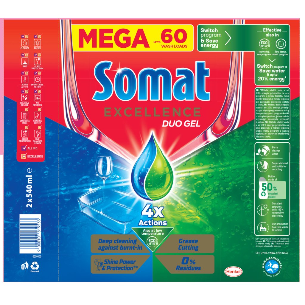 Produkt Somat Excellence Duo gel do myčky (60 mytí) Vás nezklame.