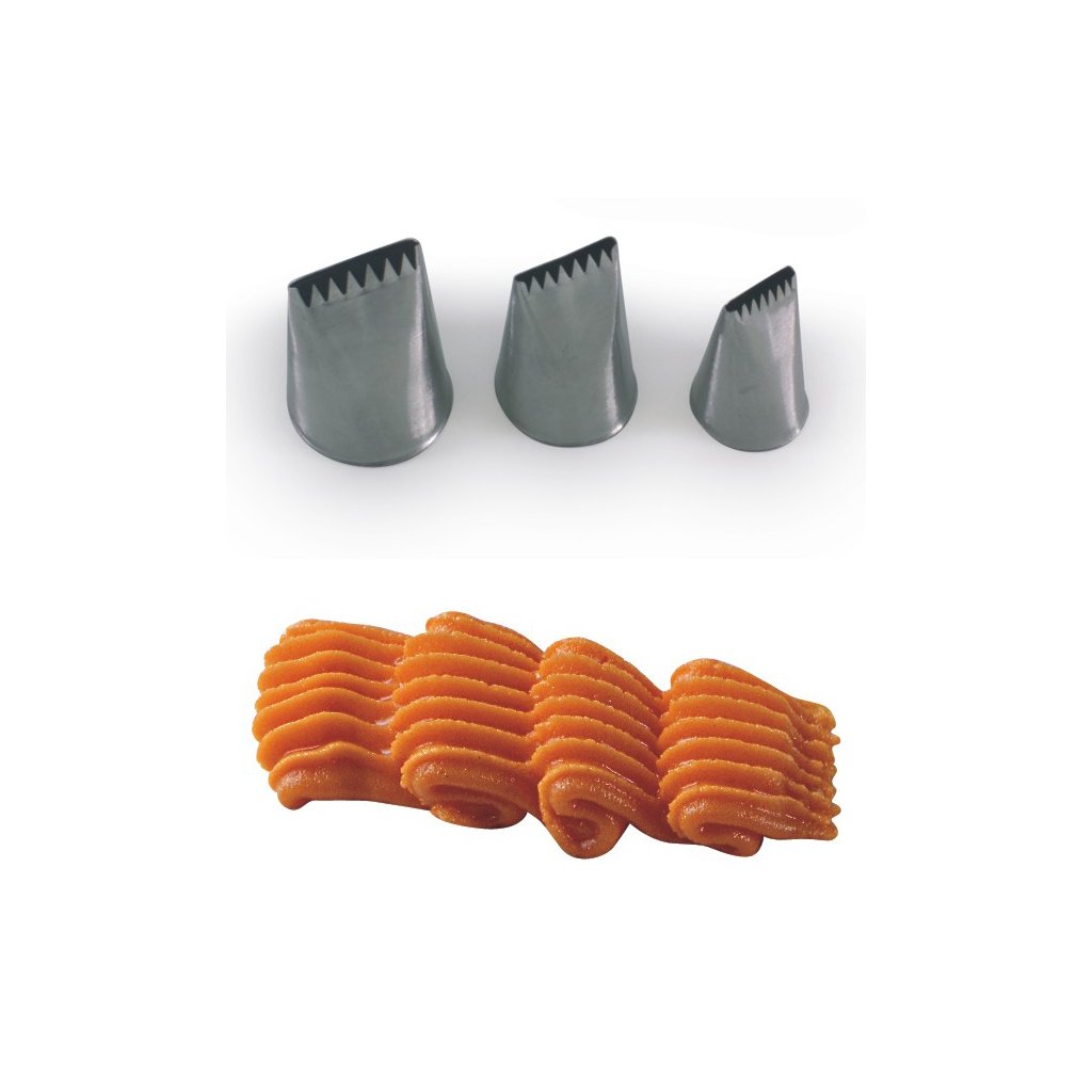 Cukrářská trezírovací špička z pevné nerezové oceli. Je vhodná jak do klasických trezírovacích sáčků, tak i do jednorázových.