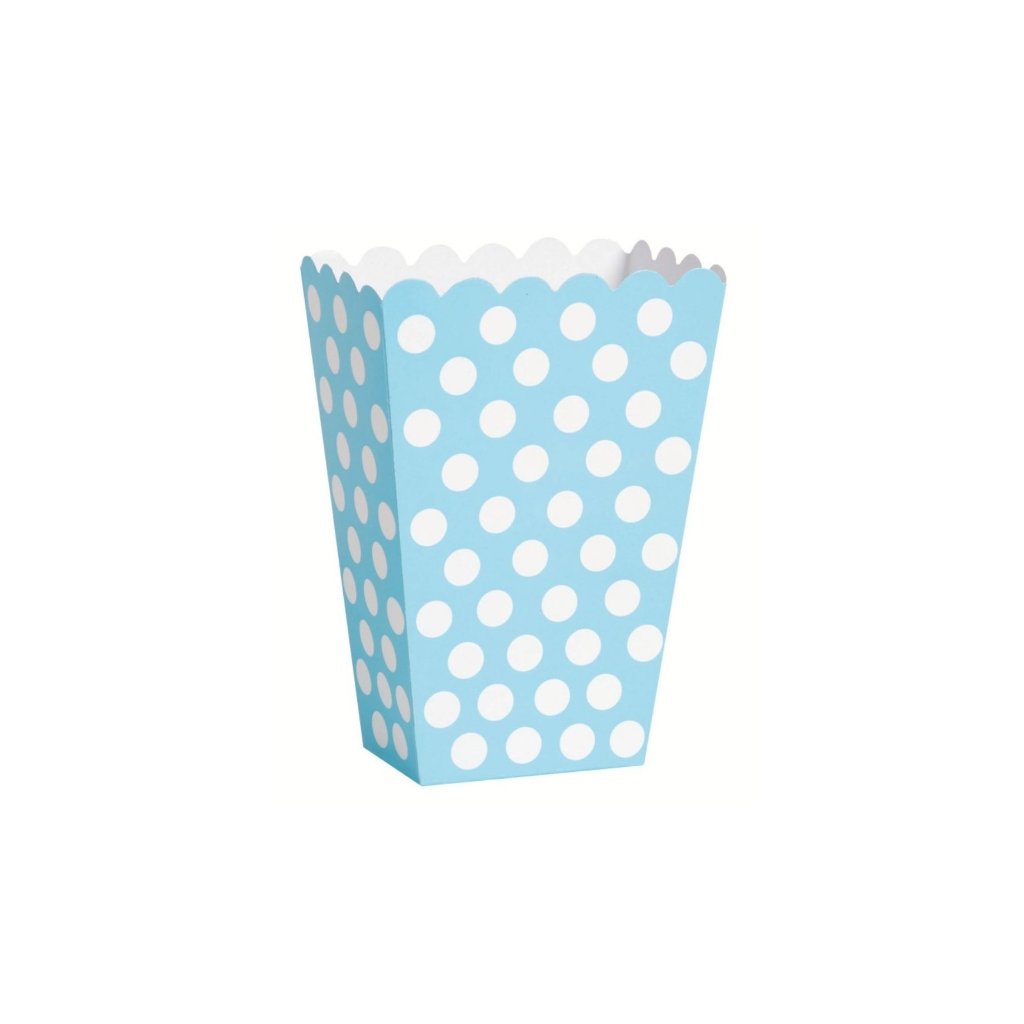 Papírové krabičky na popcorn v krásném modrém designu s puntíky. Balení obsahuje 8 krabiček o výšce 14 cm. Krabičky jsou vyrobeny z materiálu, který je odolný proti mastnotě, takže se nemusíte bát prosakování oleje z čerstvě připraveného popcornu. Jsou také ekologické, a proto šetrné k životnímu prostředí. Rozměr: 14 x 9,5 cmObjem: cca 700 mlMateriál: PapírBalení: 8 ksDoplňkové parametry
