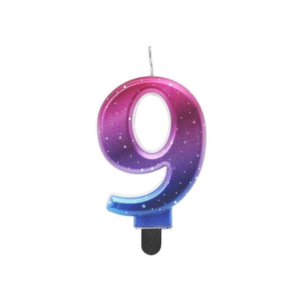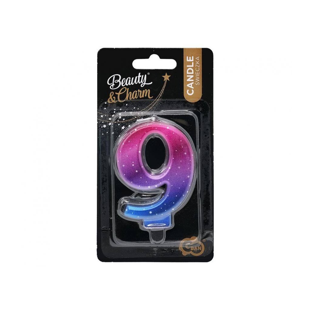 Narozeninová svíčka na dort ve tvaru číslice se stojánkem pro zapíchnutí do dortu. Její úžasný metalický potisk s nádechem noční oblohy a hvězd, je prostě úžasný. Svíčka je vhodná pro styk s potravinou. Barva: metalická mix Balení: 1 ks. Velikost: 8 cm (včetně stojánku)Doplňkové parametry
