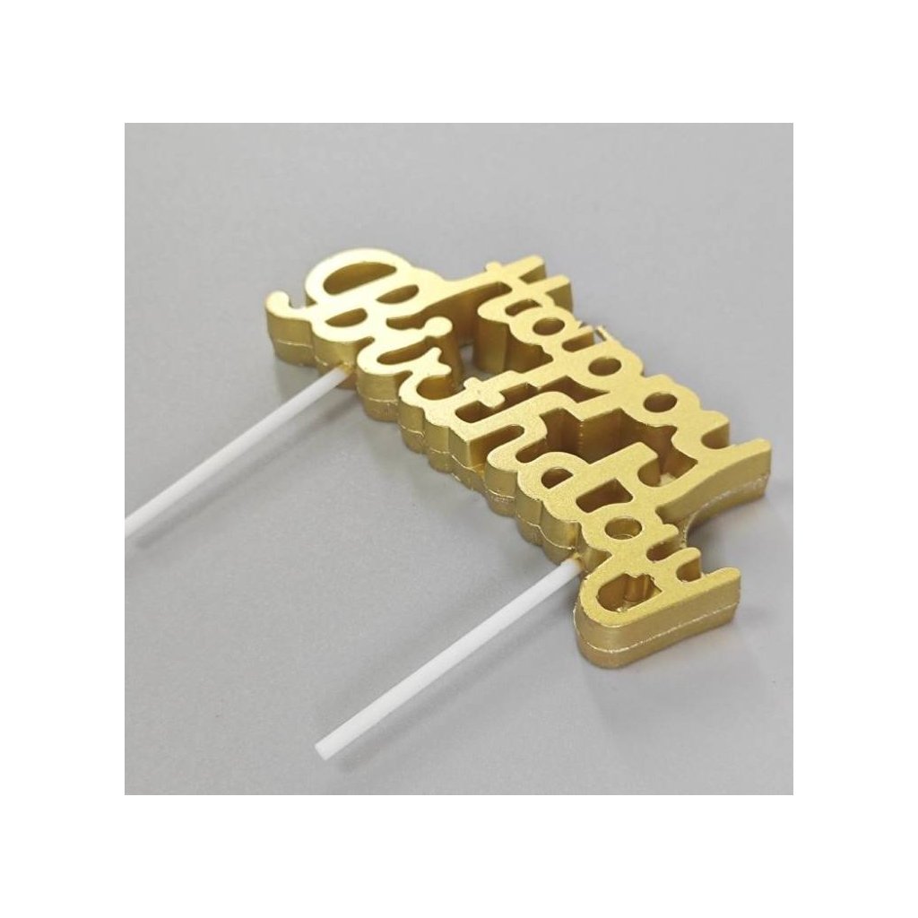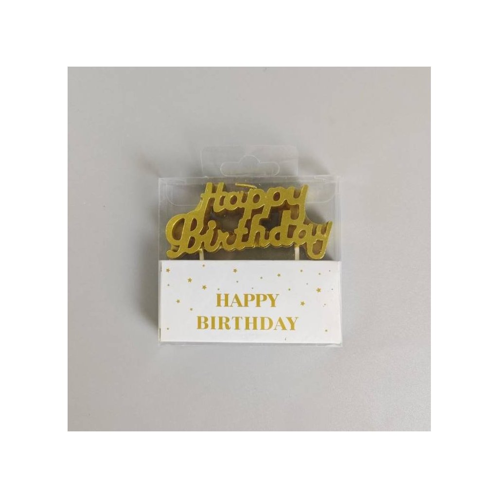 Narozeninové svíčky na dort ve tvaru nápisu "Happy Birthday". Svíčky skvěle ozdobí váš narozeninový dort. Vhodné na jakýkoliv druh oslavy nebo party. Rozměr: 8 x 3 cmDoplňkové parametry