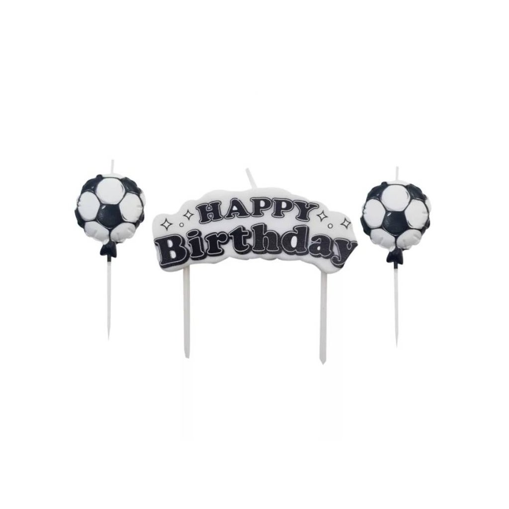 Svíčky Happy Birthday a fotbalové míče (3 ks) ▹