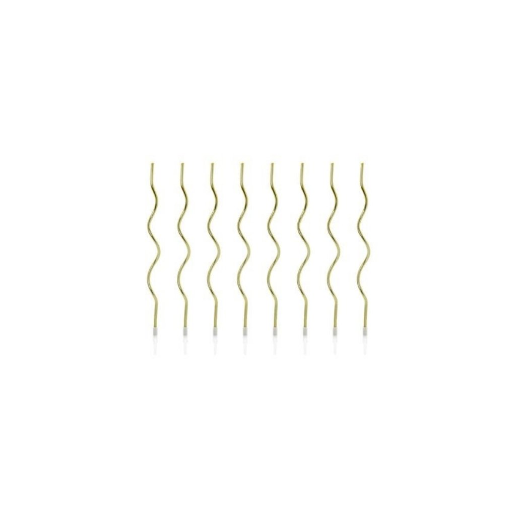 Elegantní dortové svíčky by neměly chybět na žádném narozeninovém dortu.Svíčky jsou spirálové, metalické zlaté barvy. Vhodné na jakýkoliv druh oslavy nebo party. Rozměr: 14 cm. Balení: 8 ks. Včetně podstavcůDoplňkové parametry
