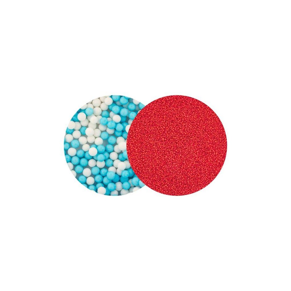 Složení: cukr (min. 97%)(EU), voda, škrob (kukuřičný), barviva: Brilantní modř FCF (E133), Červeň Allura AC (E129), Azorubin (E122), Žluť SY (E110), leštící látky: karnaubský vosk (E903, šelak (E904), včelí vosk bílý (E901) Nutriční hodnoty ve 100 g: energie 1667 kJ/392 kcal, tuky 0 g (z toho nasycené 0 g), sacharidy 98,02 g (z toho cukry 97,5 g), bílkoviny 0 g, sůl 0 gDoplňkové parametry