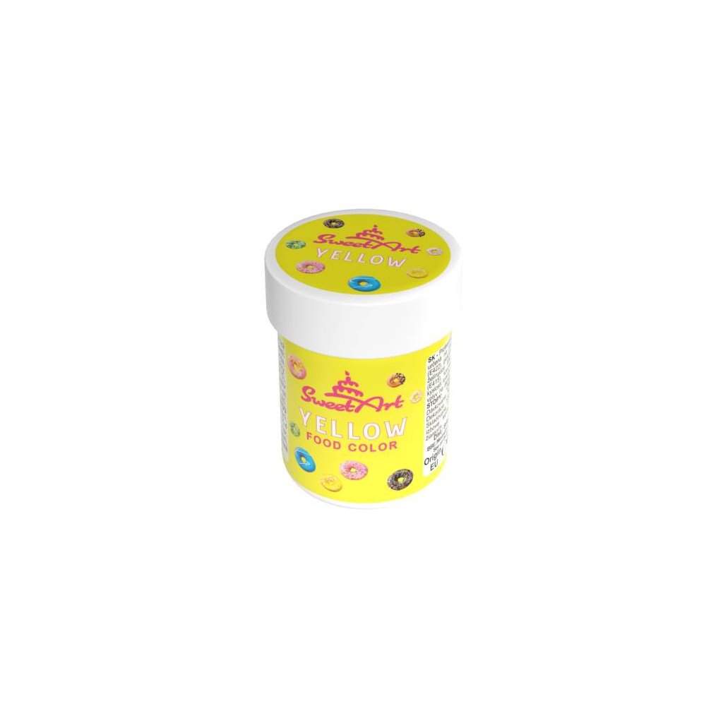 Barva je určená k barvení krémů, glazur, gelů, těst, modelovacích hmot. Přidáváme od malého množství až po docílení požadovaného odstínu. Není vhodná pro barvení čokolády, tam doporučujeme použít SweetArt barvy tekuté určené přímo do čokolády a tučných krémů.Složení, co obsahuje produkt - SweetArt gelová barva Yellow 30 g pro cukrářské účely: