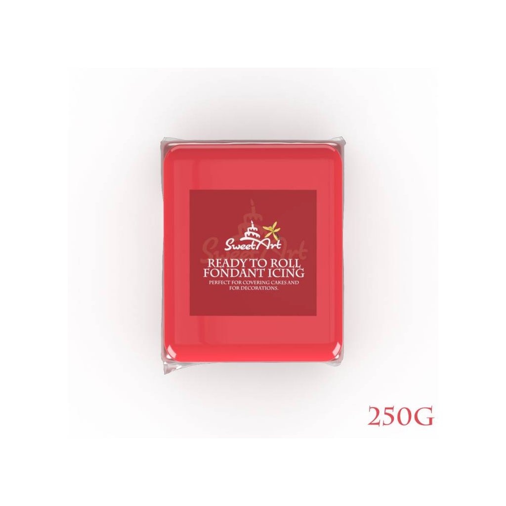 Cukrová hmota s vanilkovou příchutí na potahování dortů a výrobu jednoduchých cukrových ozdob. Hmotu propracujeme do měkké konzistence, lze ji barvit gelovými barvami do požadovaného odstínu. Dorty, případně menší dezerty, které chceme potahovat, musí být dobře vychlazené. Pokud jsou naplněné krémy obsahujícími vodu, například šlehačkou, mascarpone, tvarohem, zakysanou smetanou, je nutné dorty obmazat pevným máslovým základem (bílkovomáslový krém, pudinkovomáslový krém), nebo obmazat čokoládovou ganache. Na ganache svaříme jeden díl šlehačky, přidáme 1,5 - 2 díly čokolády a vymícháme do hladka. Potom dort obmažeme a necháme v lednici zatuhnout. Teprve potom potáhneme. Potahovací hmota by měla být silná alespoň 2,5 - 3 mm, aby se s ní dobře pracovalo.Složení, co obsahuje produkt - SweetArt potahovací a modelovací hmota vanilková Coral Red 250 g pro cukrářské účely: