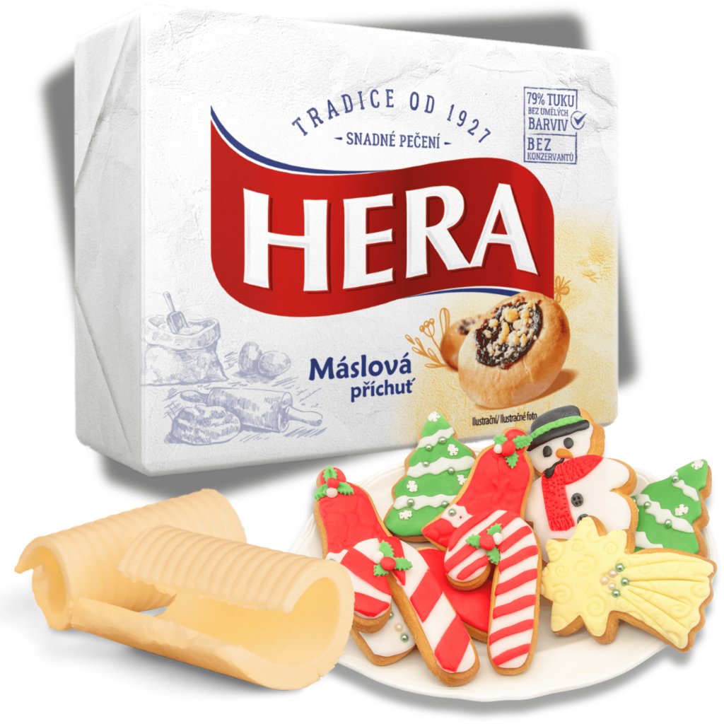 Hera je tradiční značka, která je již 90 let symbolem poctivého pečení. Její první kapitola se začíná psát roku 1928 v předválečném Československu. Tukový průmysl v té době úspěšně expandoval. Inovace výrobních technologií přinesly zlepšení kvality rostlinných tuků a zároveň snížení jejich ceny, což zajistilo možnost nákupu tuku širokým vrstvám obyvatel. Díky dlouhodobé věrnosti svých zákazníků tak historii značky Hera nepřerušila světová válka, období znárodňování, ani porevoluční změny spojené se zánikem mnoha tradičních výrobků. Rostlinný tuk Hera dodnes zůstává věrným pomocníkem každého, kdo peče s radostí. Včetně vás.