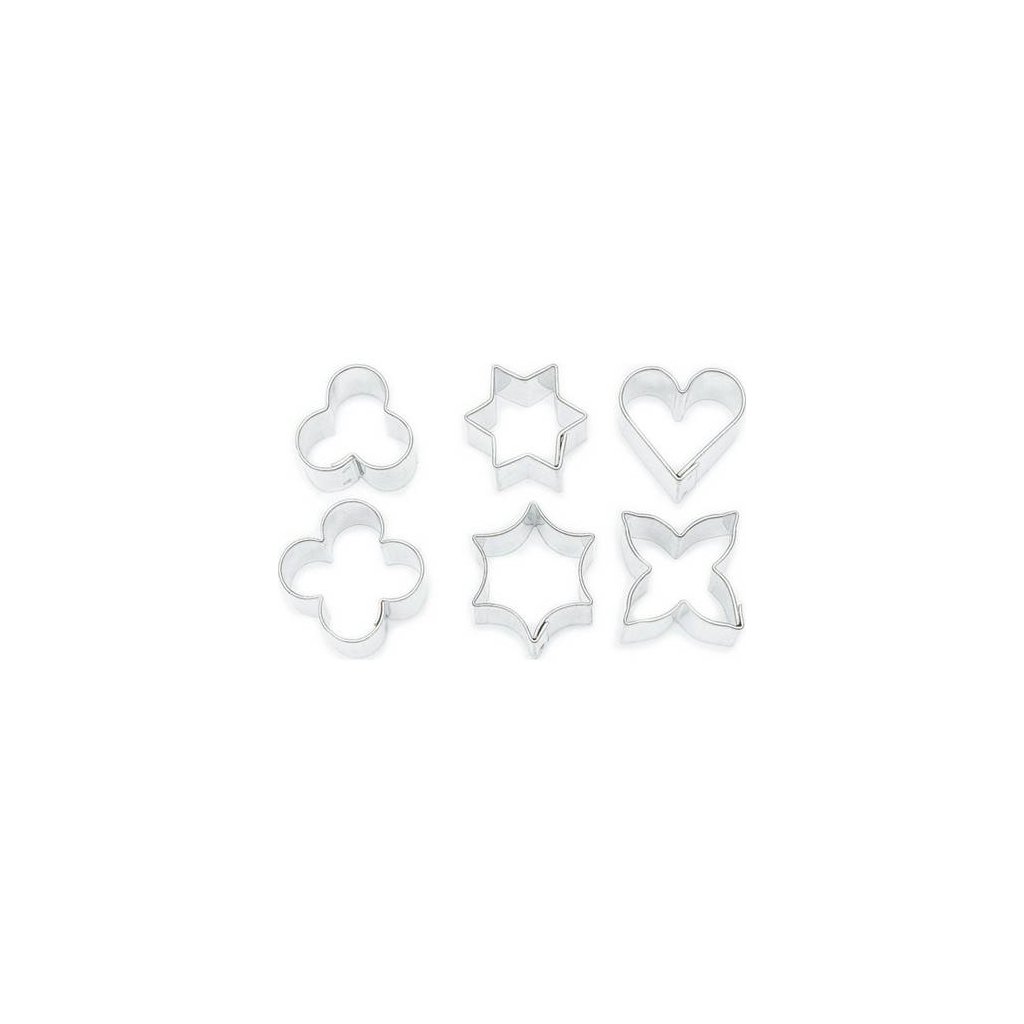 Šest vykrajovacích rámečků různých tvarů umožní vytvářet dokonale symetrické a ke zdobení vhodné motivy, které lze použít i samostatně jako malé zákusky či sladkosti, podle použitého těsta. Vhodné i na marcipánové ozdoby.Doplňkové parametry