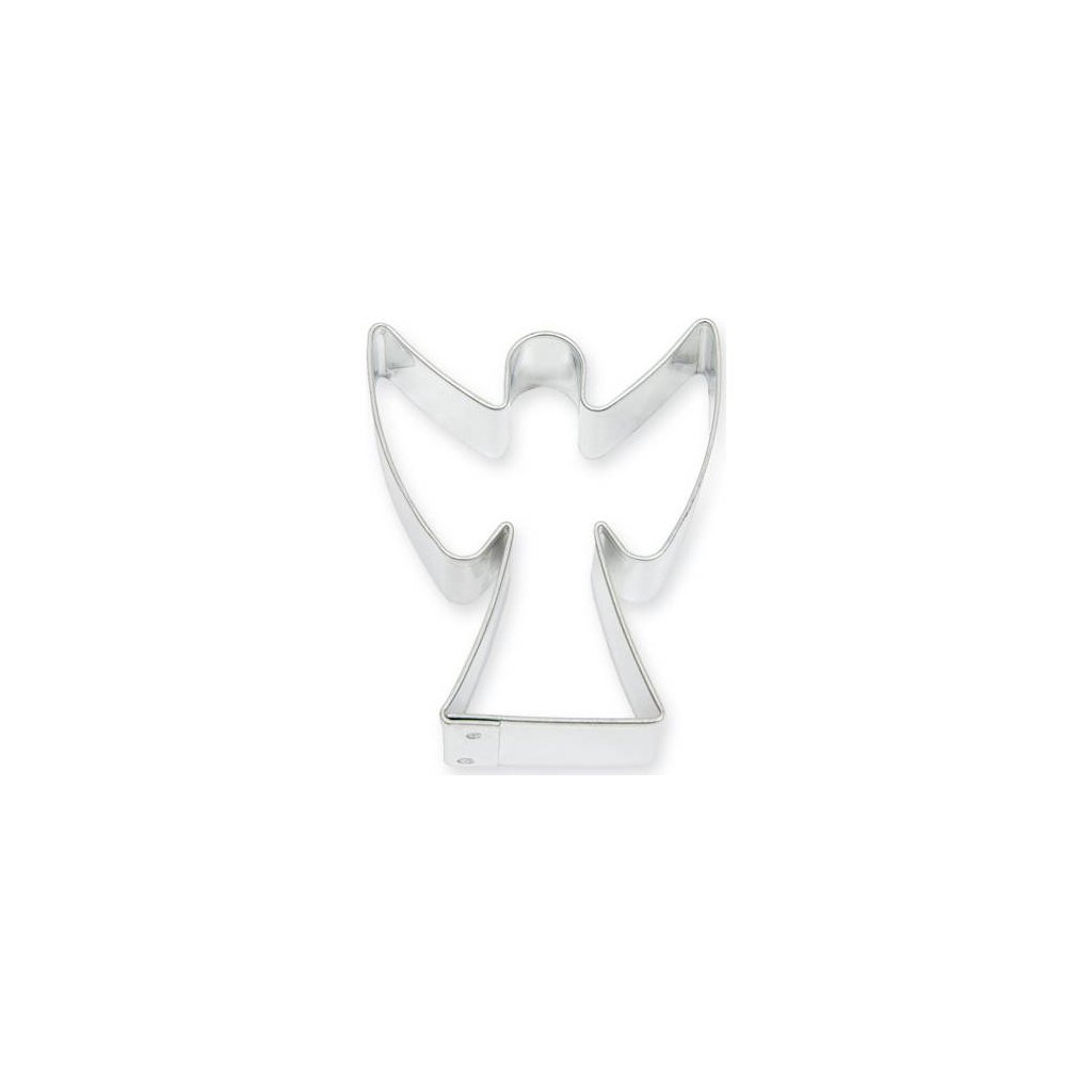 Vykrajovátko na cukroví ve tvaru stojícího anděla s křídly vyrobené z pocínovaného plechu.Doplňkové parametry