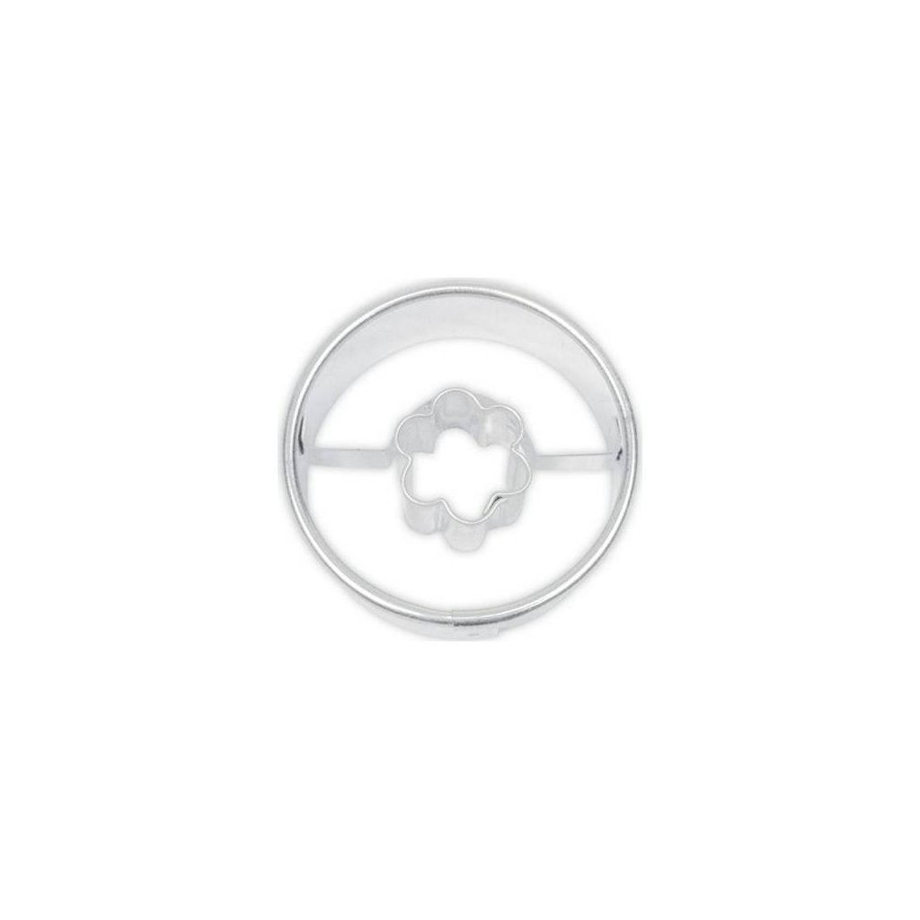 Vykrajovátko na cukroví ve tvaru kolečka průměrem 4 cm a květem uprostřed.Doplňkové parametry
