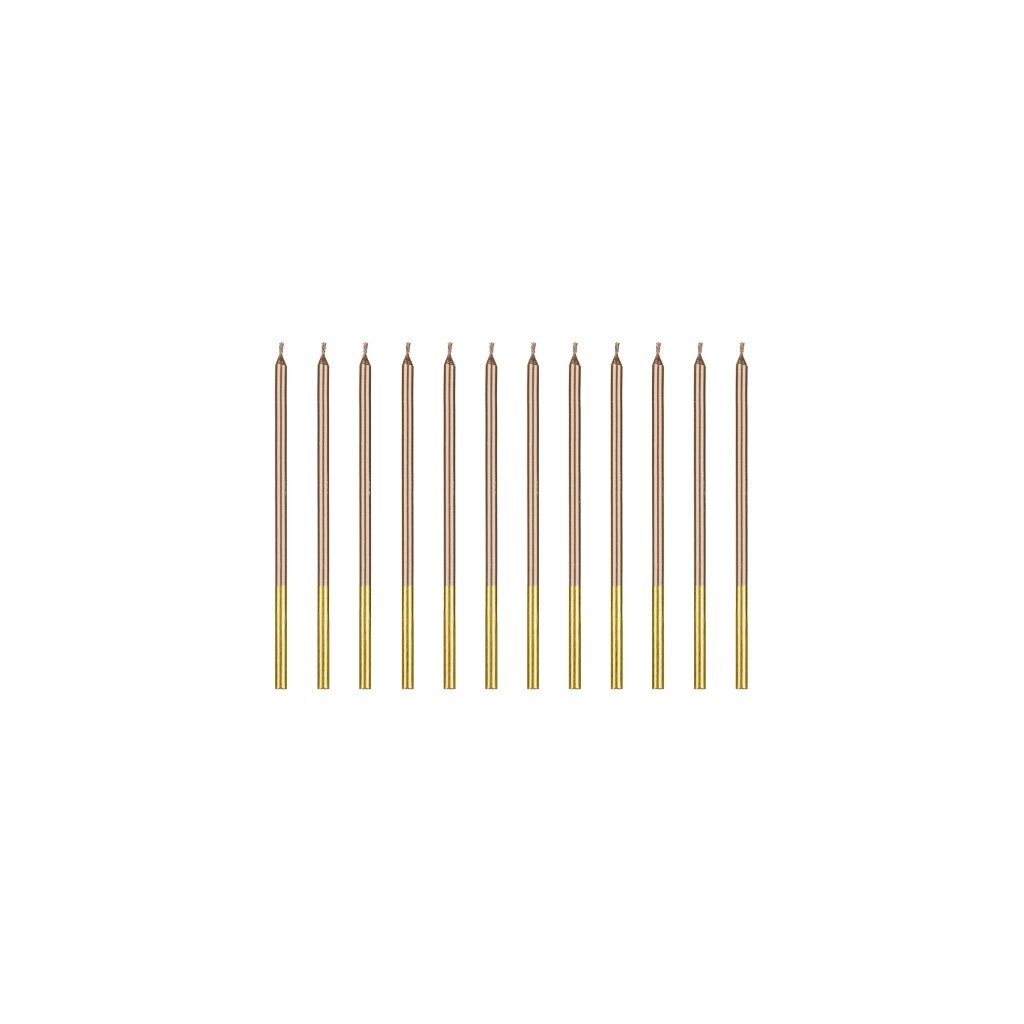 Tyto stylové dortové svíčky v metalickém odstínu rose gold zaujmou na první pohled. Díky své štíhlé a vysoké formě působí velmi decentně a slavnostně, a perfektně se hodí jak na narozeninový dort, tak na svatební nebo slavnostní dezertní stůl.Balení obsahuje 12 kusů, což je ideální počet pro většinu běžných dortů i slavnostních aranžmá. Pokud plánujete sladký bar, můžete je použít i jako detailní dekoraci sladkých jednohubek nebo cupcakeů. Materiál: ParafínRozměry: Výška cca 14 cmBarva: Rose goldBalení: 12 ksDoplňkové parametry
