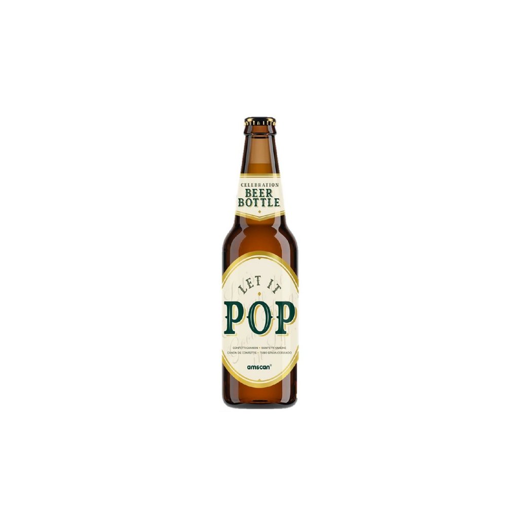 Vystřelovací konfety které jsou umístěny v pivní lahvi, opravdu. Skvělý doplněk na narozeninovou oslavu milovníka piva. Velikost lahve je 23 cm a po otočení spodní části vyletí ven zlaté konfety ve tvaru obdélníku. Vystřelovací konfety, jsou skvělý prostředek k vytvoření wow efektu. Materiál konfet: fólieTvar konfet: obdelníkBarva konfet: zlatáVelikost: 23 cmBalení: 1 ks Video s návodem k použití efektem naleznete pod tímto odkazem.Doplňkové parametry