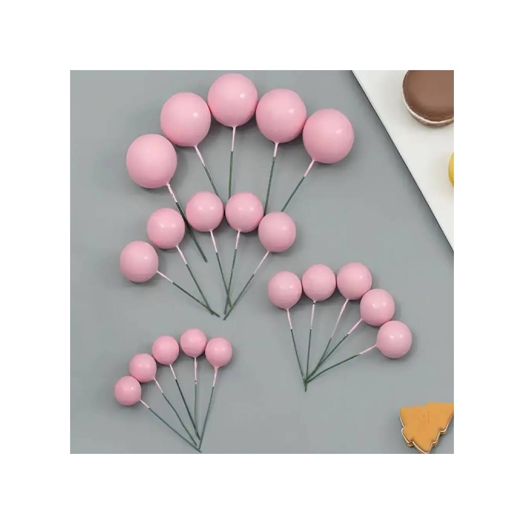 Zápich do dortu Koule růžové různé velikosti (20 ks) ▹