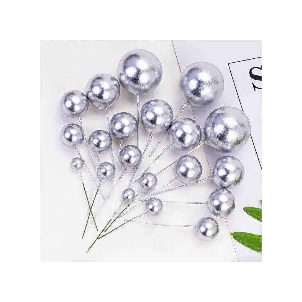 Zápich do dortu Koule stříbrné různé velikosti (20 ks) ▹