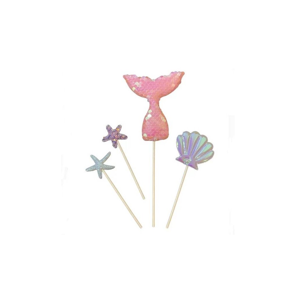 Zápich do dortu Ocas mořské panny růžový s mušlí a hvězdicemi (4 ks) ♡
