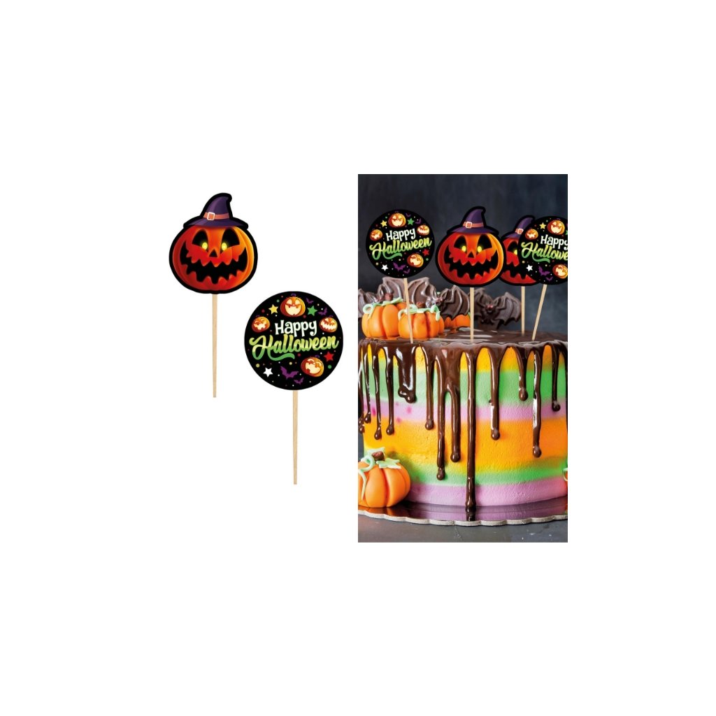 Zápichy na dort Happy Halloween jsou jednoduchým a efektním způsobem, jak dodat vašim sladkostem sváteční vzhled. V balení najdete 12 papírových dekorací o průměru 6 cm, umístěných na praktických dřevěných tyčkách. Motivy s dýněmi, nápisem Happy Halloween a strašidelnými ilustracemi dodají dortům, muffinům nebo cupcakům hravou halloweenskou atmosféru. Jsou ideální pro domácí pečení, cukrářské výtvory i party občerstvení. Snadno je zapíchnete do sladkostí a po oslavě jednoduše vyhodíte. Rozměry: Průměr dekorace 6 cm, délka se zápichem cca 10 cmMateriál: Papír, dřevoBarva: Barevný potisk (dýně, nápis Happy Halloween)Balení: 12 ksDoplňkové parametry