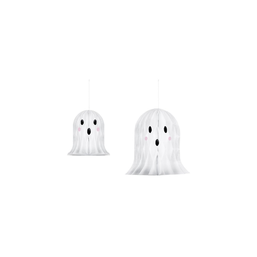 Zavěste ducha do prostoru a dodejte své halloweenské výzdobě pořádnou dávku roztomilé strašidelnosti. Tyto bílé papírové dekorace ve tvaru ducha mají jemnou voštinovou strukturu a připevňují se snadno pomocí klipu. V balení najdete dva kusy ve dvou různých velikostech, které spolu krásně ladí a vytvoří efektní 3D dekoraci. Ideální do oken, nad stůl nebo do dětského pokoje na strašidelnou oslavu. Díky kvalitnímu provedení je můžete využívat opakovaně. Rozměry: cca 20 cm a 30 cmMateriál: PapírBarva: Bílá s černými detaily a růžovými tvářičkamiBalení: 2 kusyUchycení: Zavěšení na šňůrku, uzavírání pomocí klipuOpakované použití: AnoDoplňkové parametry