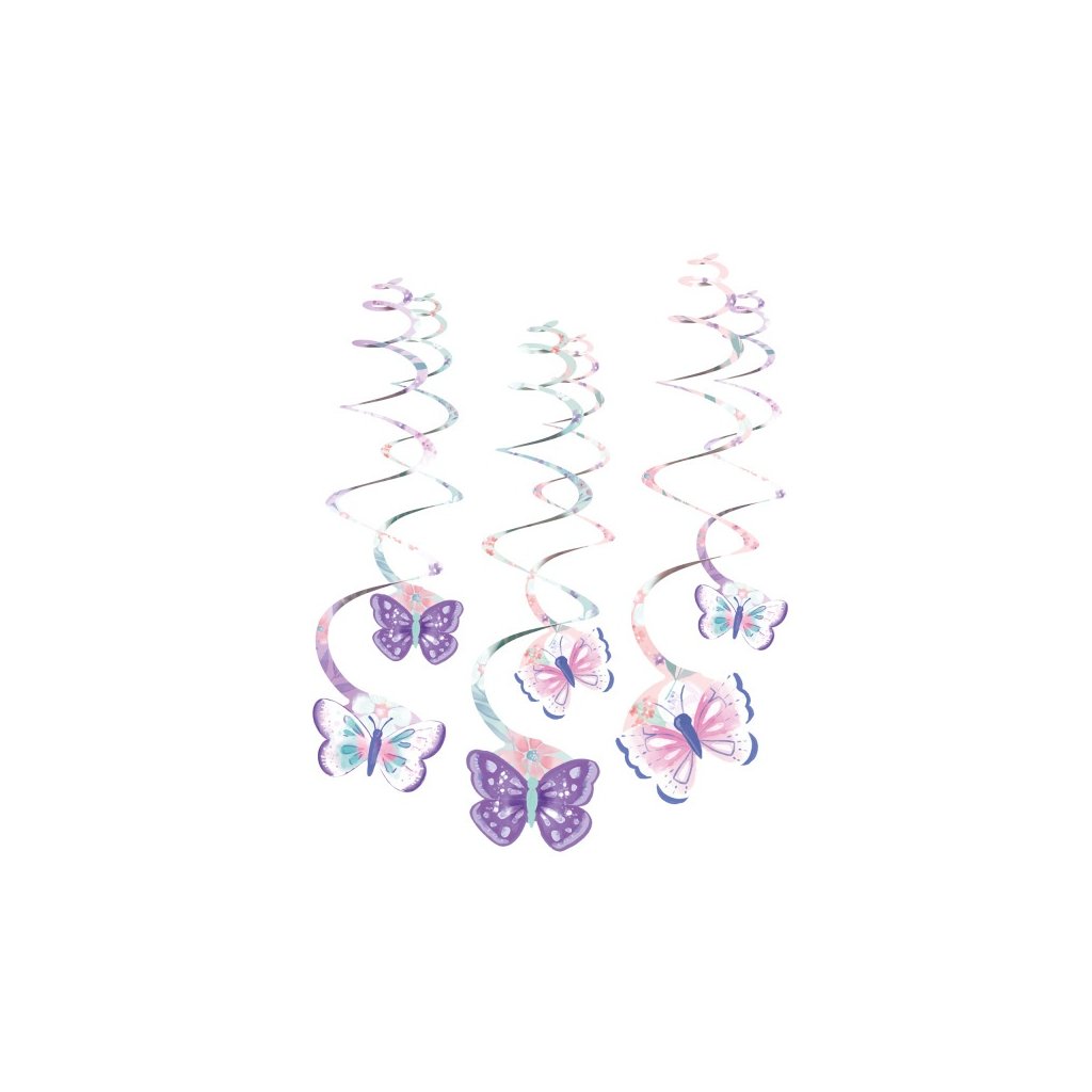 Závěsné spirály s motivem Motýlků. Vhodné na oslavu narozenin nebo tématickou party. Vhodné zkombinovat s dalšími produkty s motivem Motýlků. Rozměr: 61 cm. Balení: 6 ks.Doplňkové parametry