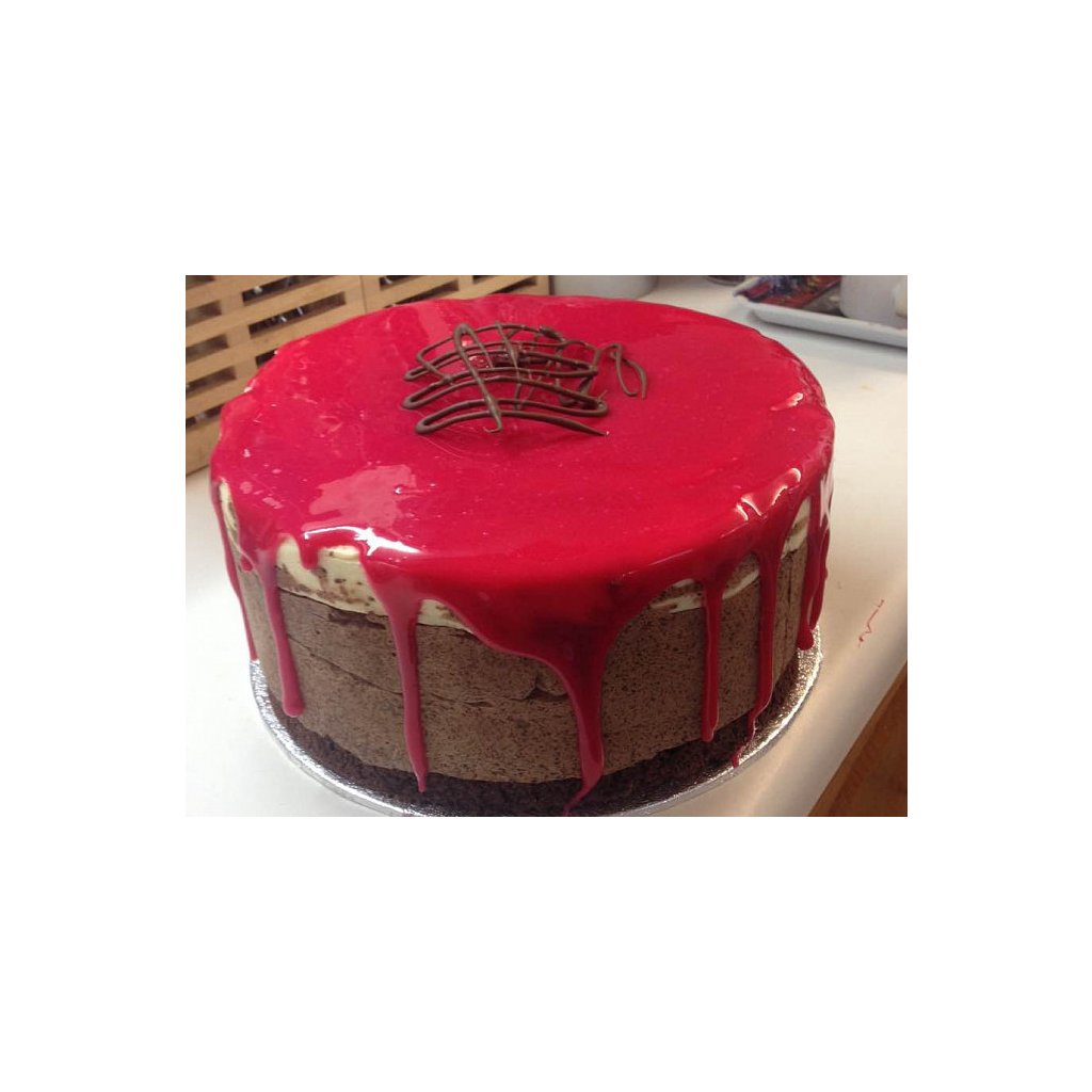 Použití: Zahřejte Mirror Glaze ve vodní lázni nebo v mikrovlnné troubě po dobu 20-30 sekund na nízký výkon. Míchejte, dokud hmota zcela nezkapalní. Když hmota vychladne na cca 27-28° C, naléváme ji na mražený krémový dort, dokud se nevytvoří uzavřená vrstva. Přebytečný materiál lze znovu použít. Polévejte proto na mřížce.